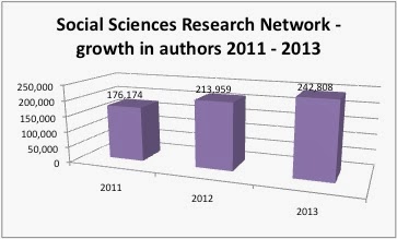 That's a lot of people. As this chart illustrating the growth of authors participating in the Social Sciences Research Network shows, there are now close to a quarter of a million authors participating in just this one open access initiative, with 66,000 authors signing on in the past two years.
